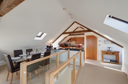 Living Room/AreaStunning open plan living/kitchen/dining featuring a vaulted ceiling and exposed beams